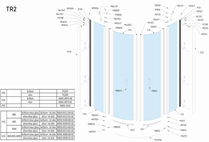 Náhradní díly na sprchový kout čtvrtkruhový s dvoukřídlými dveřmi Roltechnik TR2 od 2011 100
