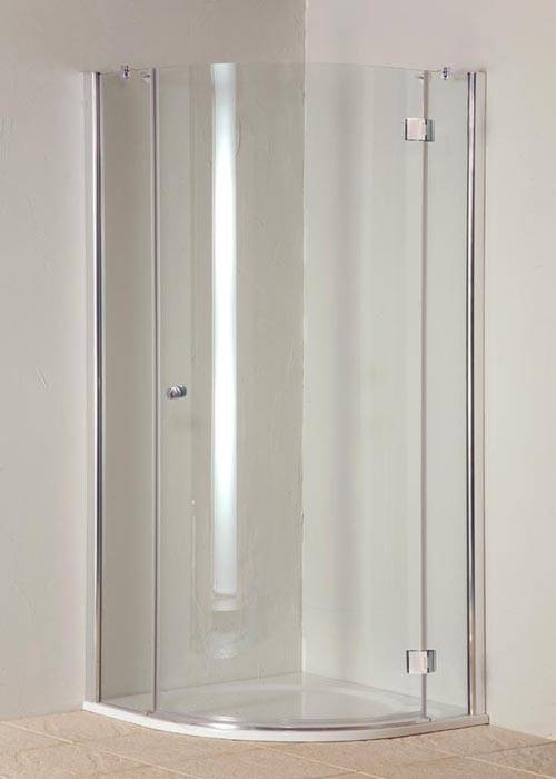 Sprchový kout čtvrtkruhový s jednokřídlými dveřmi, výplň transparent.