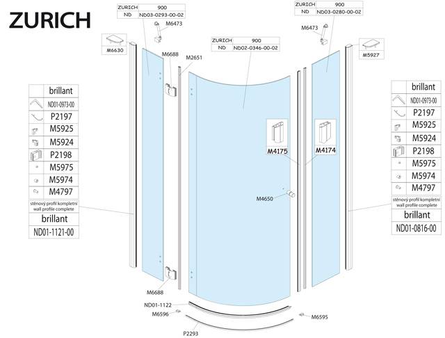 Náhradní díly na sprchový kout čtvrtkruhový s jednokřídlými dveřmi Roltechnik ZURICH 90