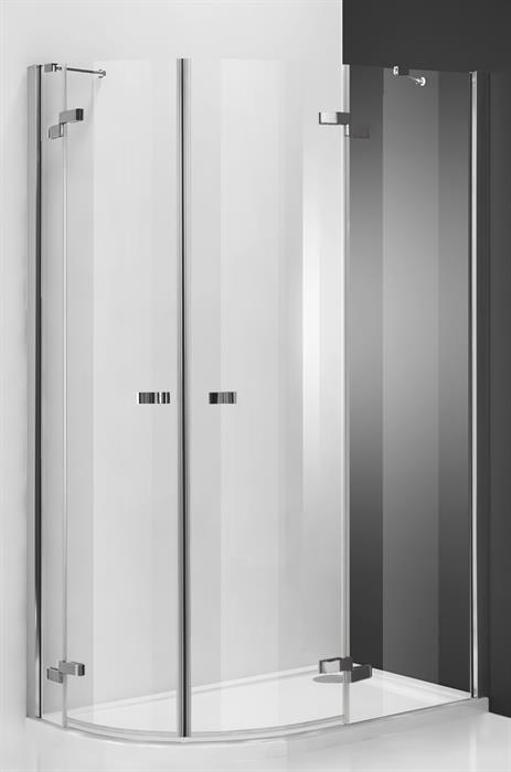 Sprchový kout čtvrtkruhový s dvoukřídlými dveřmi, výplň transparent.