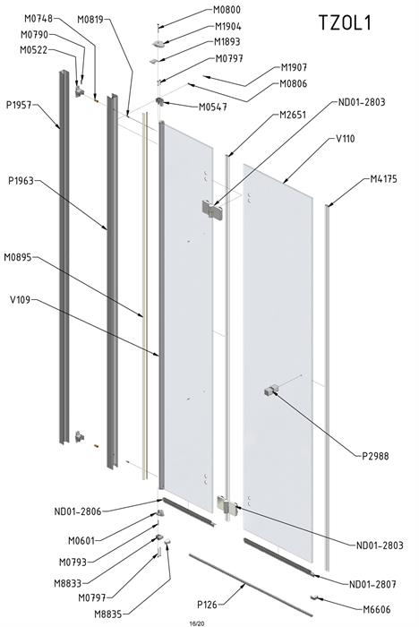 Náhradní díly na sprchový kout čtvercový Roltechnik TZOL1 90