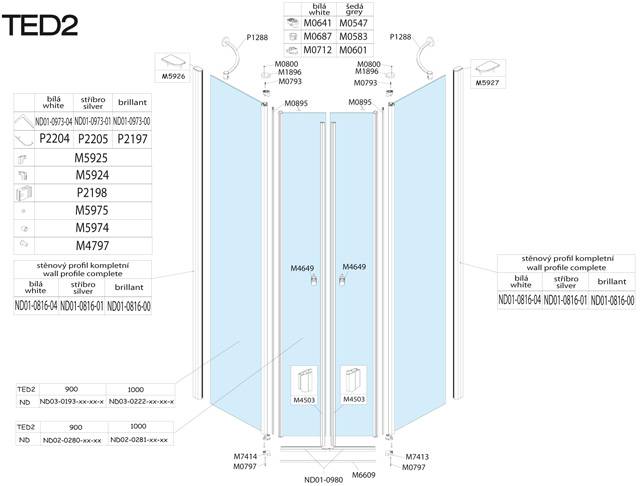 Náhradní díly na pětiúhelníkový sprchový kout s jednokřídlými dveřmi Roltechnik TED2 100
