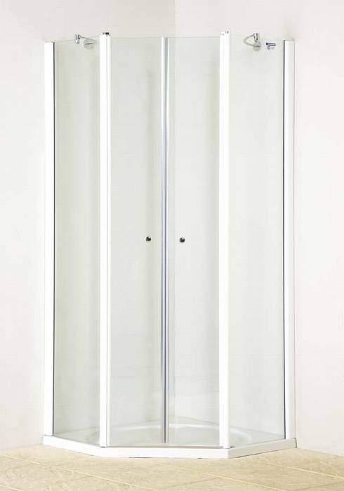 Sprchový kout pětiúhelníkový s jednokřídlými dveřmi, výplň transparent.