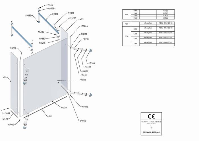 Náhradní díly na sprchovou zástěnu walk in Roltechnik WALK A 100