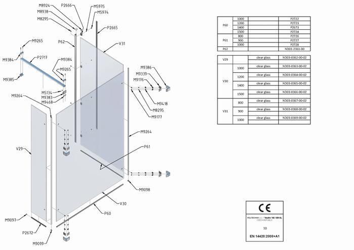 Náhradní díly na sprchovou zástěnu walk in Roltechnik WALK B 120