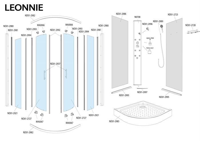 Náhradní díly na čtvrtkruhový hydromasážní box Roltechnik LEONNIE 90
