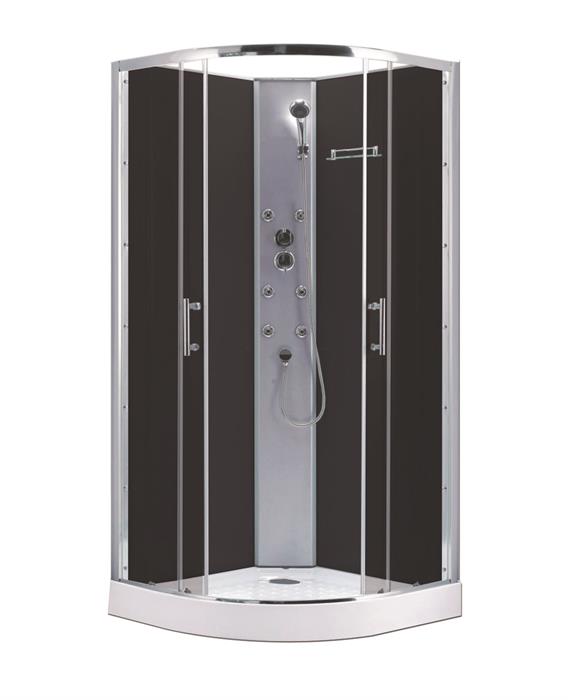 Čtvrtkruhový hydromasážní box bez klobouku, výplň transparent.