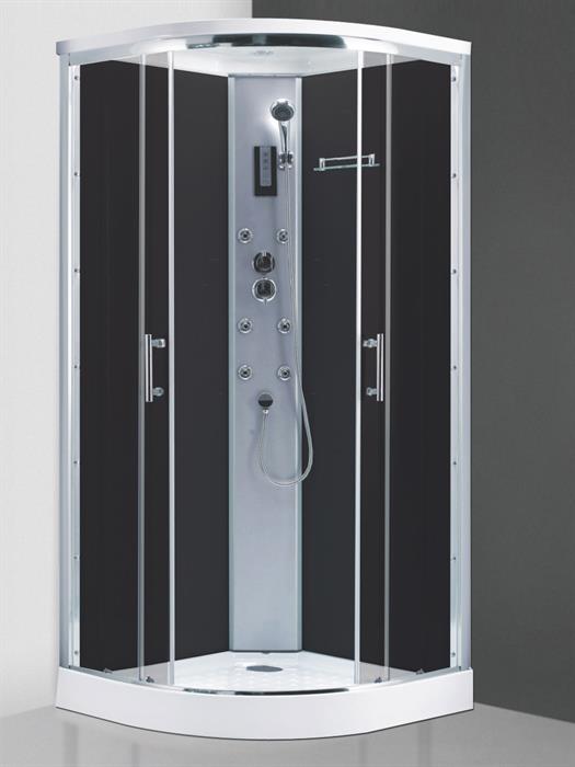Čtvrtkruhový hydromasážní box, výplň transparent.