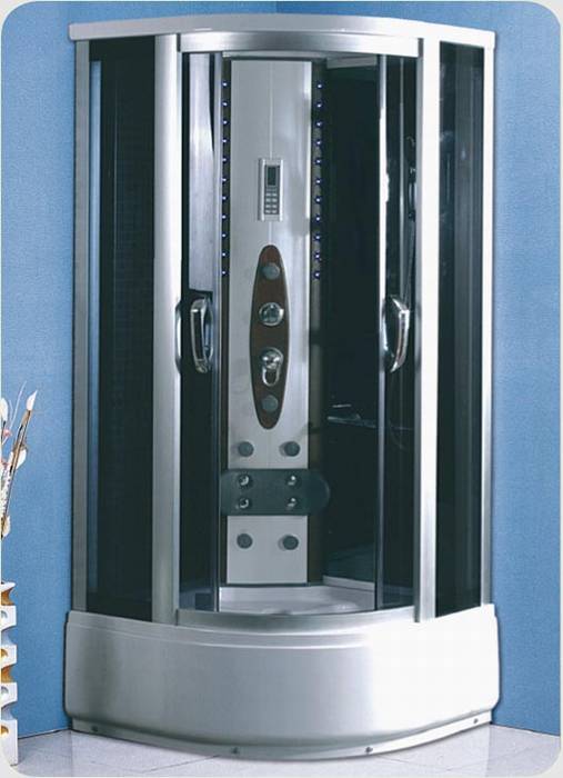 Čtvrtkruhový hydromasážní box, výplň transparent.