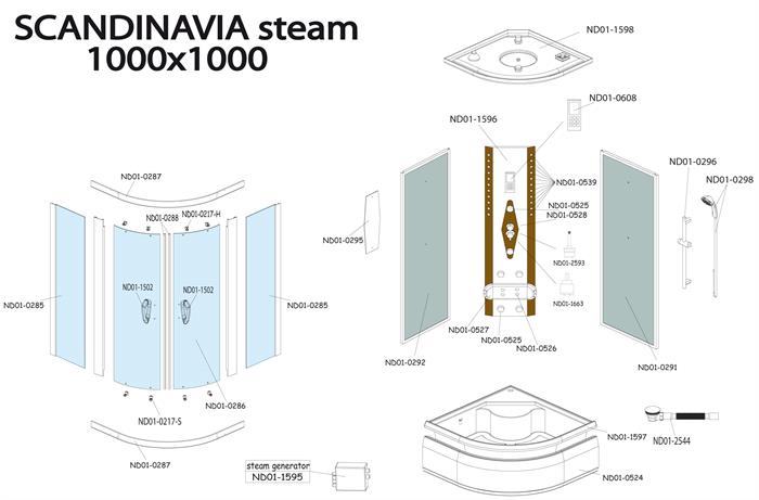 Náhradní díly na čtvrtkruhový hydromasážní box Roltechnik SCANDINAVIA STEAM 100