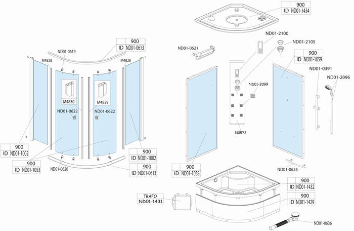 Náhradní díly na čtvrtkruhový masážní box Roltechnik BRUNO DEEP 90