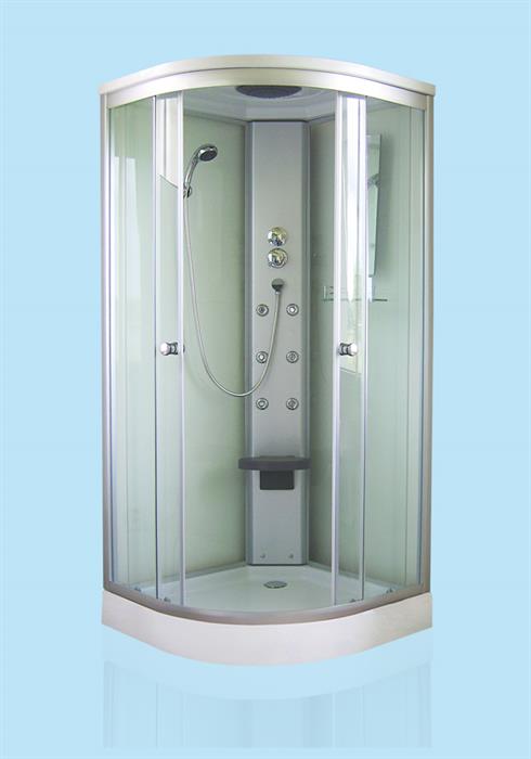 Čtvrtkruhový masážní box, výplň čiré sklo.