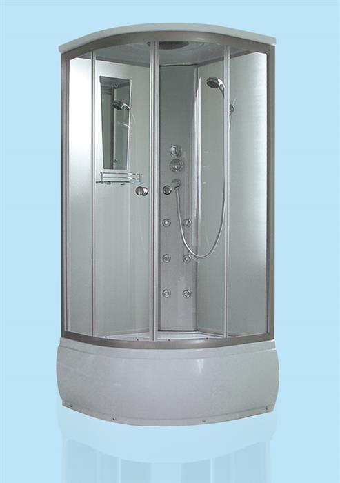Čtvrtkruhový masážní box, výplň čiré sklo.