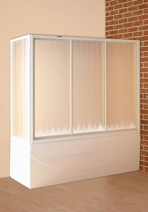 Třídílná vanová zástěna, výplň rugiada.