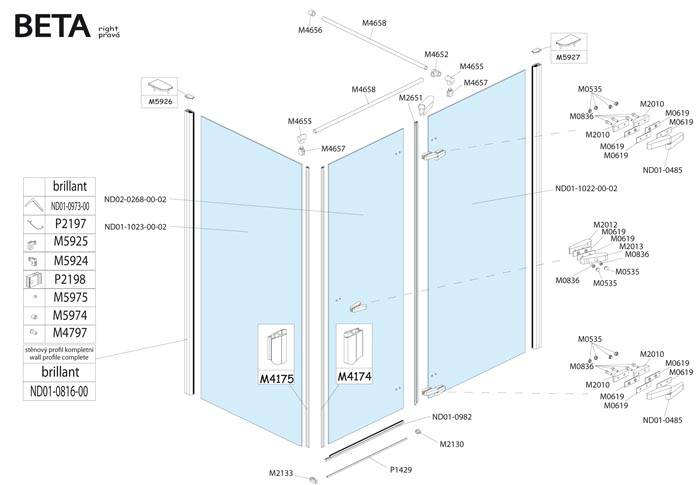Náhradní díly na sprchovou zástěnu walk in Roltechnik BETA pravá