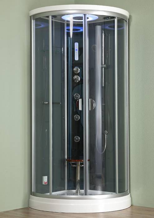 Čtvrtkruhový hydromasážní box, výplň čiré sklo.