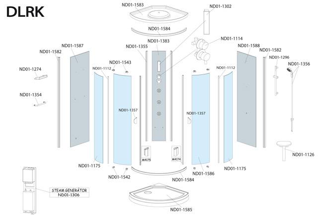 Náhradní díly na čtvrtkruhový hydromasážní box Roltechnik DLRK