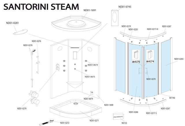 Náhradní díly na čtvrtkruhový hydromasážní box Roltechnik SANTORINI STEAM