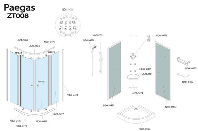 Náhradní díly na čtvrtkruhový hydromasážní box Roltechnik PAEGAS