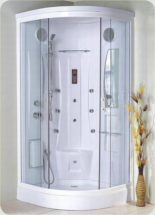 Čtvrtkruhový hydromasážní box, výplň čiré sklo.