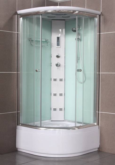 Čtvrtkruhový masážní box, výplň čiré sklo.