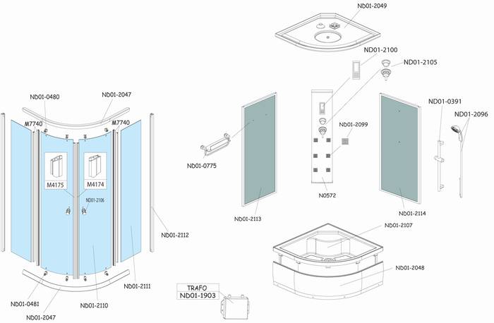 Náhradní díly na čtvrtkruhový masážní box Roltechnik BIANCO DEEP