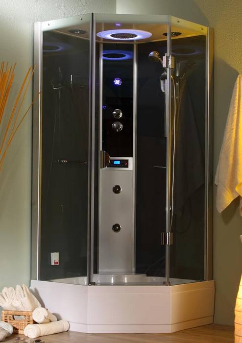 Pětiúhelníkový masážní a parní box, výplň čiré sklo.