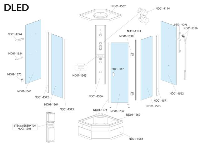 Náhradní díly na pětiúhelníkový hydromasážní a parní box Roltechnik DLED