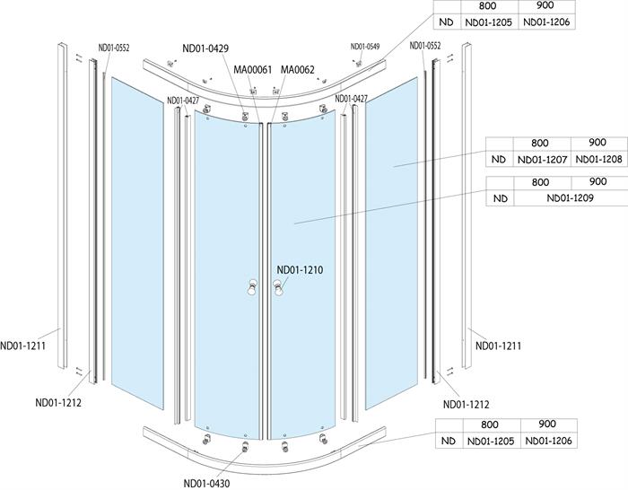 Náhradní díly na sprchový kout čtvrtkruhový s posuvnými dveřmi Roltechnik RUBIN LUX 80