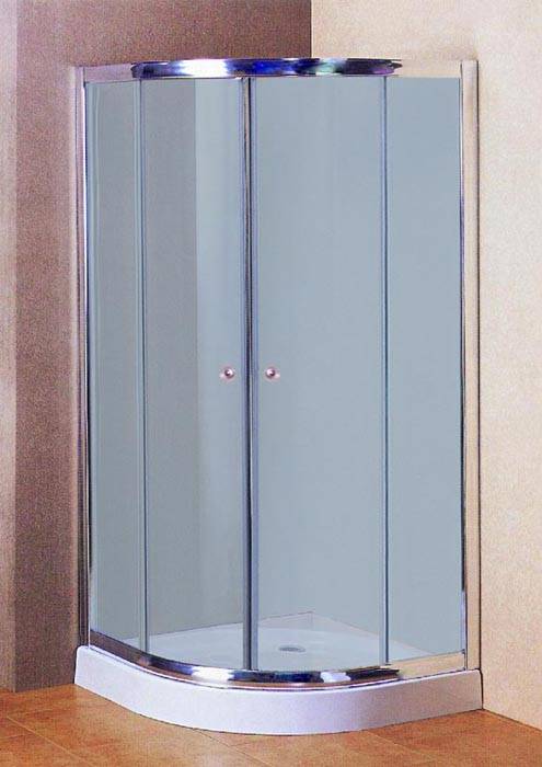 Sprchový kout čtvrtkruhový s posuvnými dveřmi.