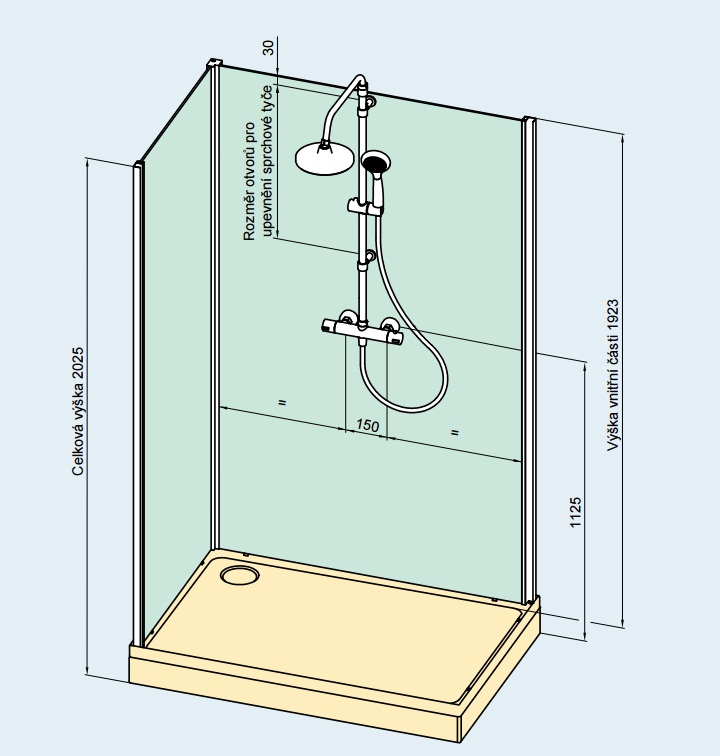 • Standardní výška včetně vaničky 2025 mm.
