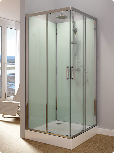 Čtvercová kabina MODUL 1400 (TOPAC) s rohovým vstupem (s dvoudílnými posuvnými dveřmi) varianta baterie 3