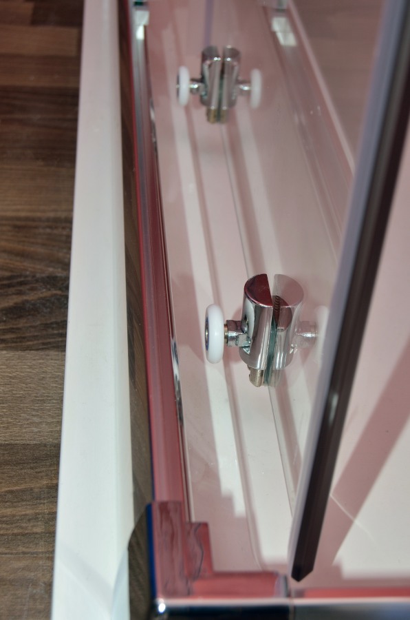 Sprchová zástěna SMARAGD má zdvojené horní pojezdové kolečka pro tichý a bezproblémový chod.
