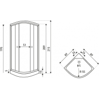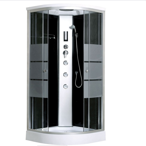 • Výbava: rádio, ventilátor, halogenové osvětlení, dotykový ovládací panel, dešťová sprcha umístěná na střeše, sprchová hlavice, 3 pevné hydromasážní trysky PP, skleněná police se zábradlím