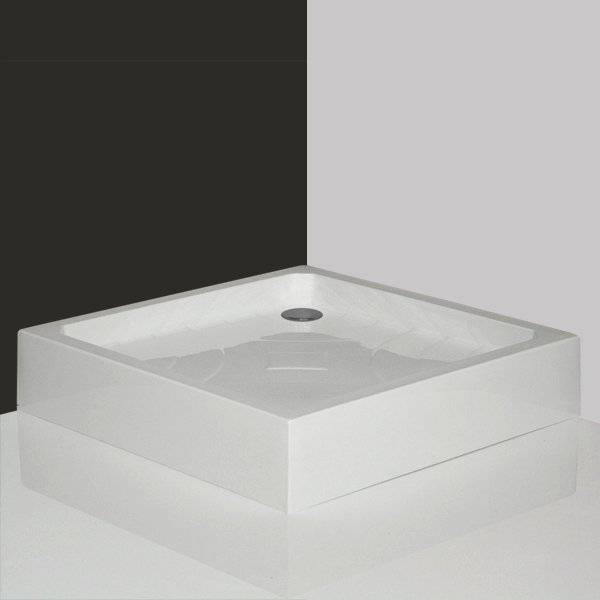 Samonosná čtvercová sprchová vanička z koextrudované skořepiny s PU nosičem s protiskluzovou úpravou.