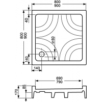 Čtvercová sprchová vanička Roltechnik COLA-P 90