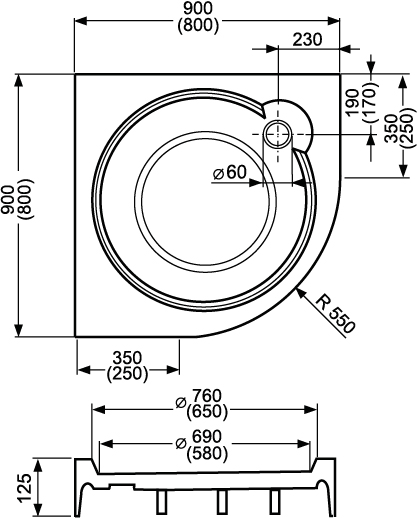 Čtvrtkruhová sprchová vanička Roltechnik (Sanipro) DREAM-P 80