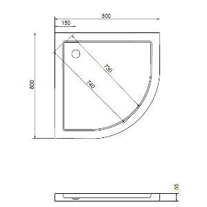 Čtvrtkrohová sprchová vanička. Hodí se pro všechny kabiny s poloměrem 55 cm a velikostí 80x80 cm, výška 5,5 cm.