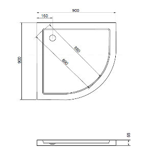Čtvrtkrohová sprchová vanička. Hodí se pro všechny kabiny s poloměrem 55 cm a velikostí 90x90 cm, výška 5,5 cm.