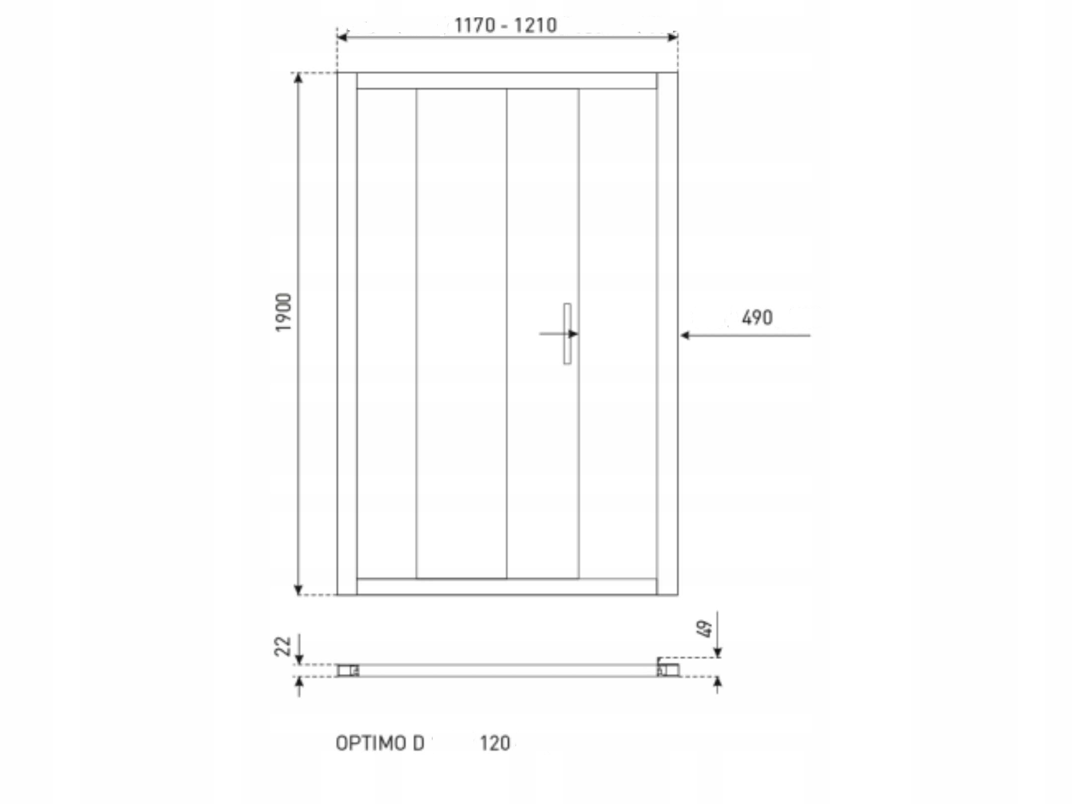 • Výška 190 cm, šířka 117-121 cm, vstupní šířka asi 49 cm