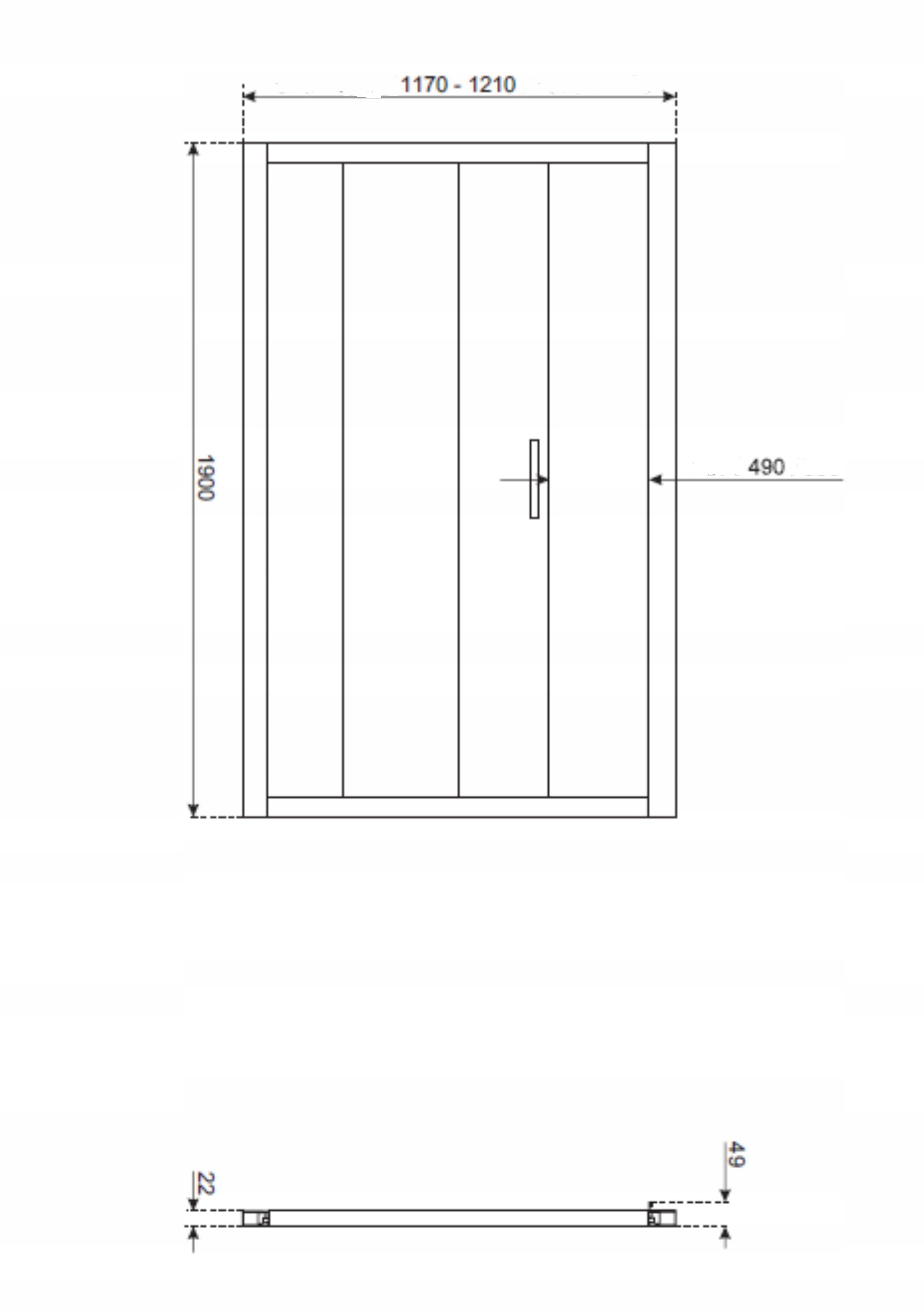 • Výška 190 cm, Šířka 117-121 cm, vstupní šířka asi 49 cm.