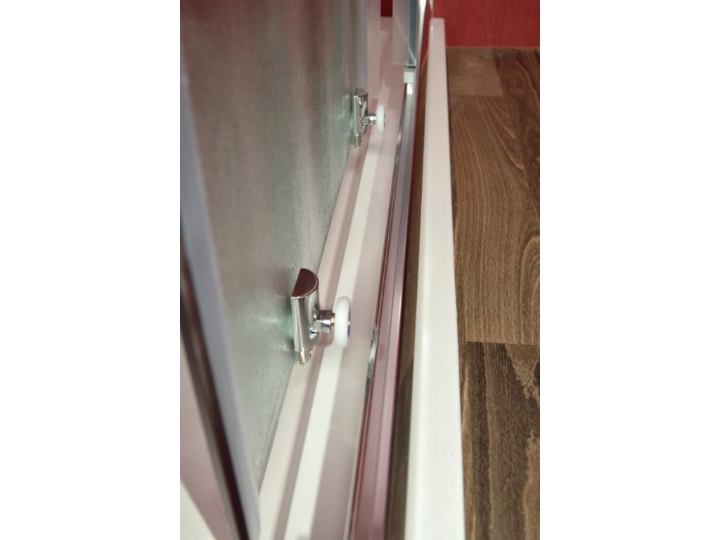 Sprchová zástěna SMARAGD 80 s čirým sklem má zdvojené horní pojezdové kolečka pro tichý a bezproblémový chod.