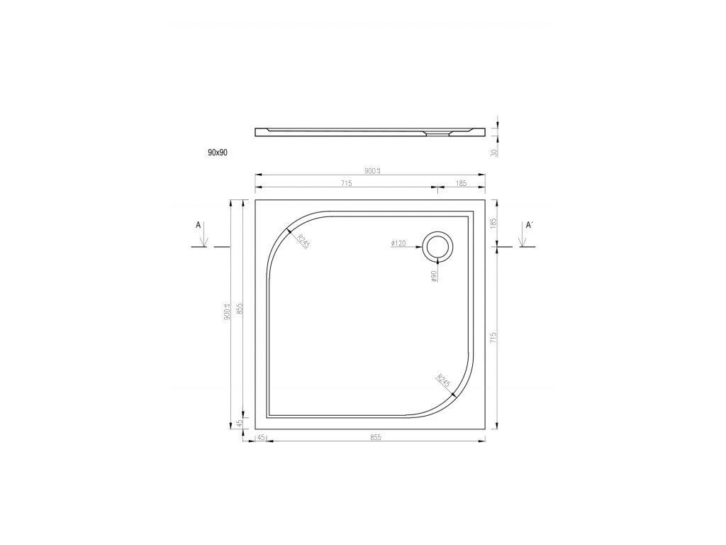 Rozměr: 90 x 90 x 198 cm (výška je včetně vaničky)