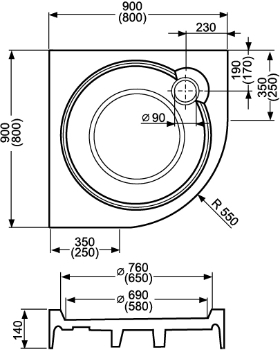 | 2335-332-900R55S-04-01 | Čtvrtkruhový sprchový kout s dvoudílnými posuvnými dveřmi CR2 90 B/POL |