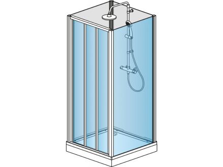 SanSwiss sprchová kabina třídílné posuvné dveře čtverec MODUL 1200 90x90x203cm montáž do rohu čiré sklo - varianta 4