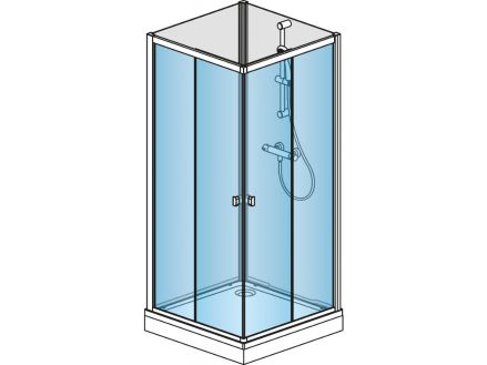 SanSwiss sprchová kabina s dvoudílnými posuvnými dveřmi rohový vstup čtverec MODUL 1200 90x90x203c