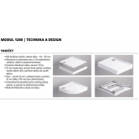 • Akrylátová vanička umístěna na svařovaném rámu a vyztužená na spodní straně skleněnými vlákny o celkové