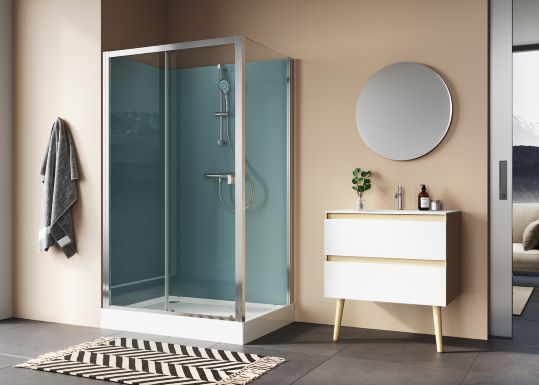 • Výplň: zadní stěna z lakovaného 6mm bezpečnostního skla + Aquaperle
