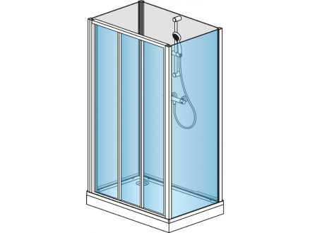 SanSwiss sprchová kabina třídílné posuvné dveře obdélník MODUL 1200 80x100x203cm montáž do rohu čiré sklo - varianta 3