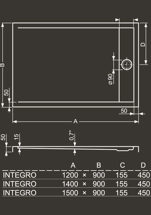 Obdélníková sprchová vanička Roltechnik INTEGRO o 150x90